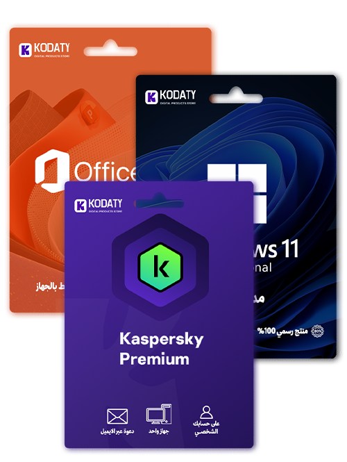 باقة ويندوز 11 برو + أوفيس 2021 + كاسبرسكي بتفعيل أصلي. نظام احترافي، أدوات إنتاجية كاملة، وحماية قوية في عرض توفير مميز.
